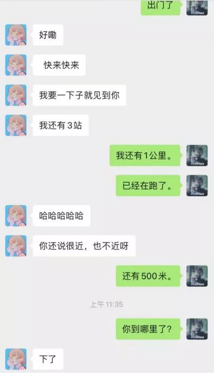 我们之间的距离以前是校车的一小时,每当周六周天有时间的时候都会想方设法相互见一面,每当快要见面的那几个小时,就显得非常漫长,连几百米都是跨天漫漫银河。所以,见你,我是用跑的!